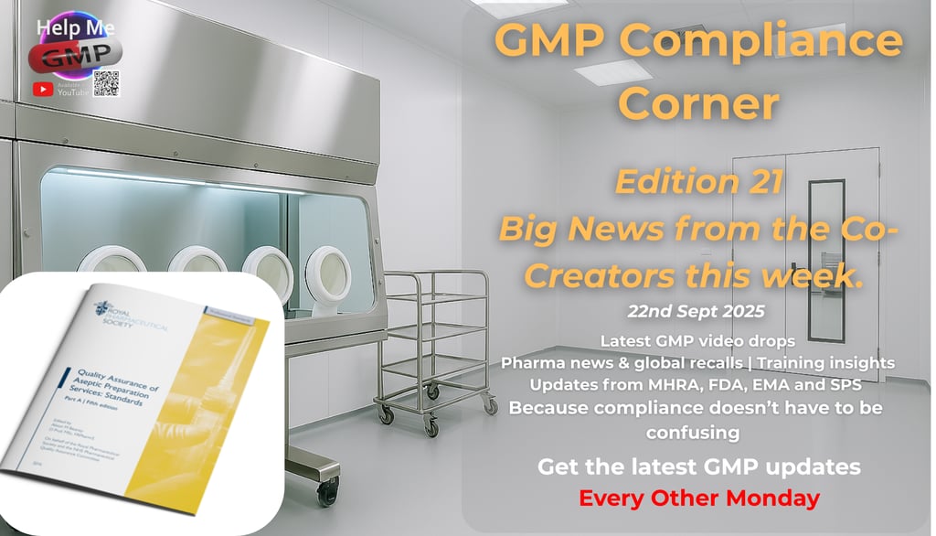Big news this edition: both Adam Walker and Kyle Winn have been selected to help re-write the QAAPS standards with the Royal Pharmaceutical Society. This is a huge honour and a real chance to shape the future of Section 10 aseptic services across the NHS. We’re proud to play a part in strengthening the governance of aseptic production, aligning practice with Annex 1, iQAAPS, and the wider transformation agenda. RPS QAAPS programme page: https://www.rpharms.com/recognition/setting-professional-standards/quality-assurance-of-aseptic-preparation-services And another milestone to celebrate: The Help Me GMP channel has now passed 1,000 subscribers on YouTube! A big thank you to everyone who’s been supporting, sharing, and learning with us.